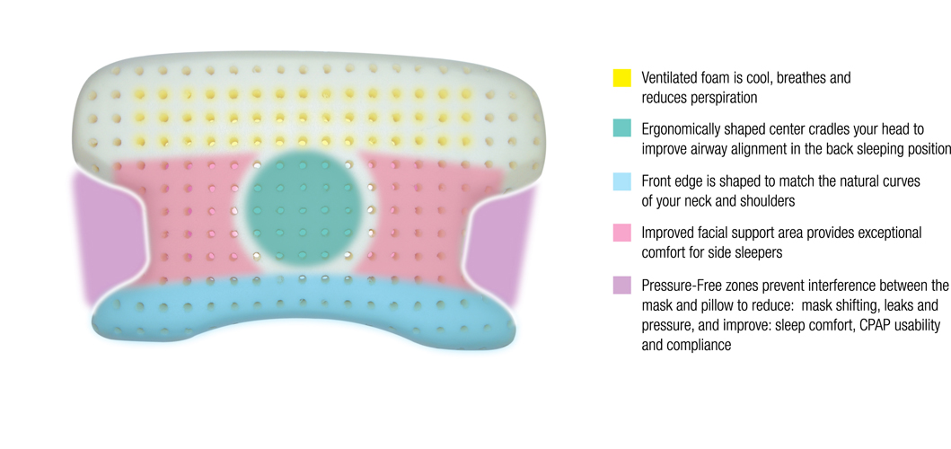 • Cut Outs edges accommodate the mask and hose for side-sleepers.