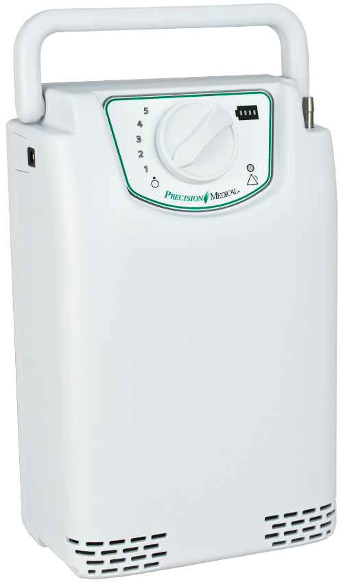Precision Medical’s patented Controlled Minute Volume (CMV) oxygen conserving technology delivers a consistent amount of oxygen per minute to the patient in the first half of inspiration, regardless of breath rate. The delivered oxygen volume automatically adjusts to the patient’s breath rate, maintaining minute volume.