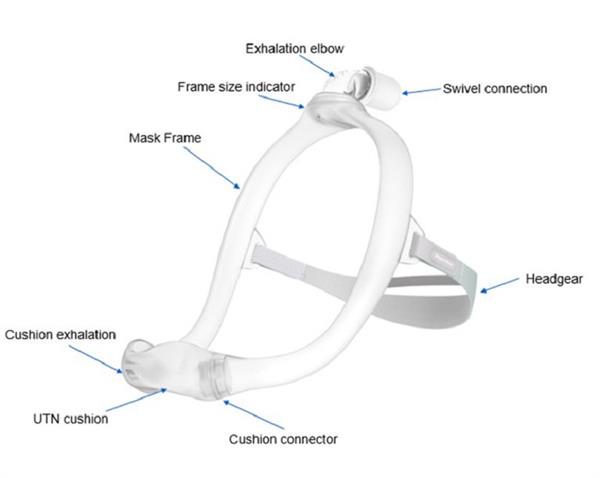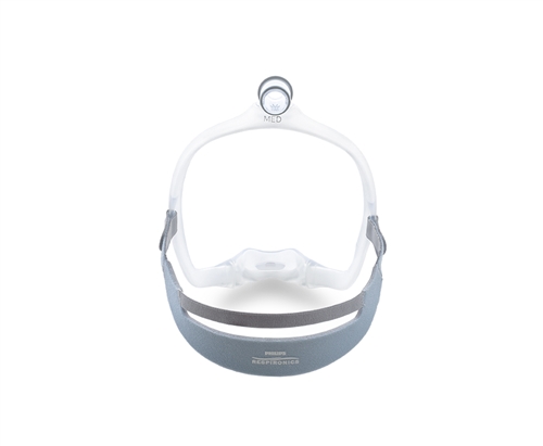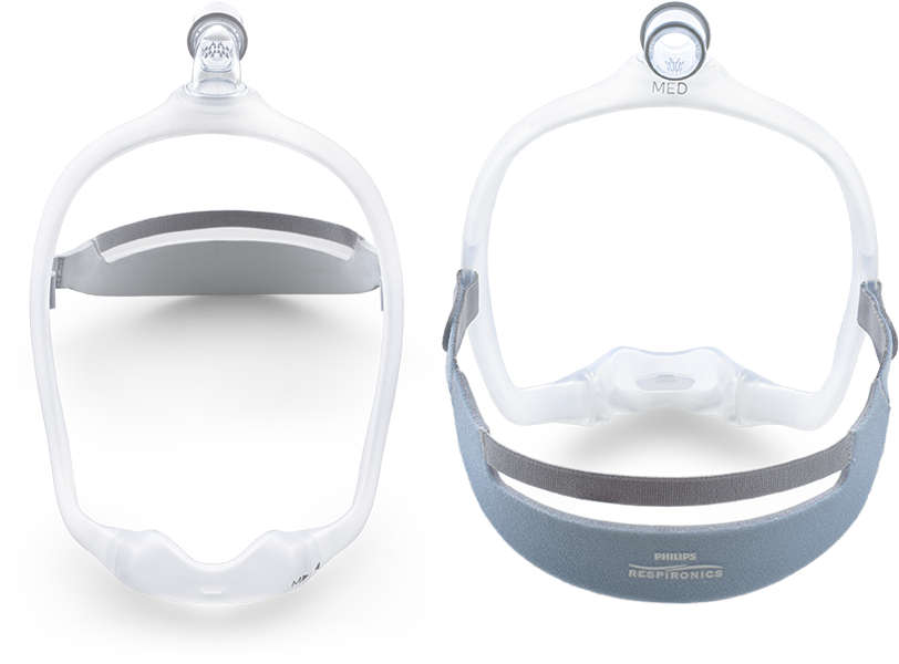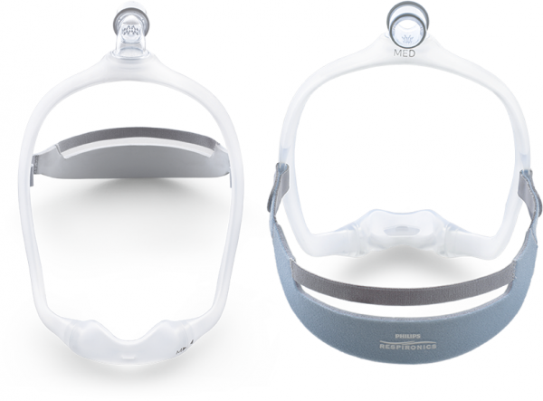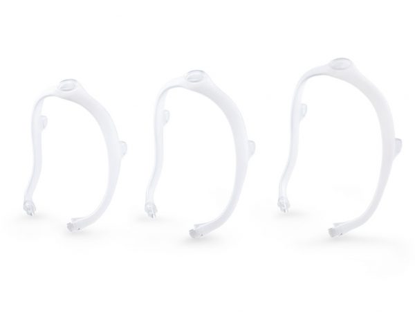 The DreamWear frame is made up of silicone tubing which allows airflow to pass through to the nasal cushion. The frame helps accommodate those that sleep in nearly all positions achieve and maintain proper seal and airflow to the cushion. If one side of the mask frame is closed off by being laid on, the airflow will be directed entirely through the other side to prevent any loss in airflow. Also included are wraps which can be placed on the frame to further help avoid irritation.